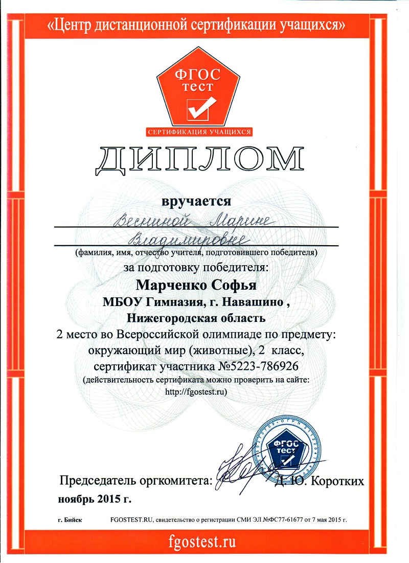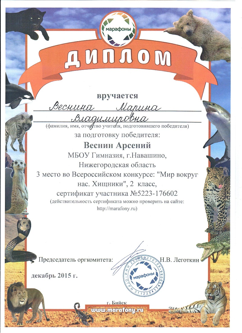 Персональный сайт учителя Весниной Марины Владимировны | |