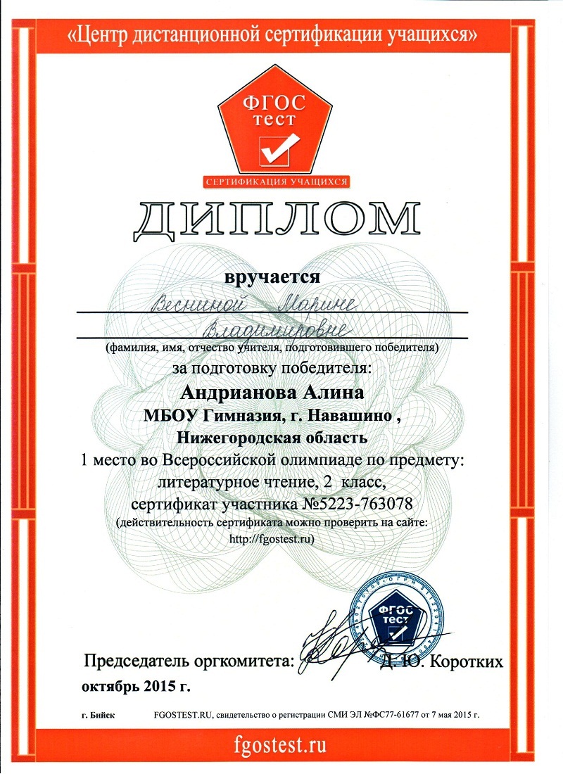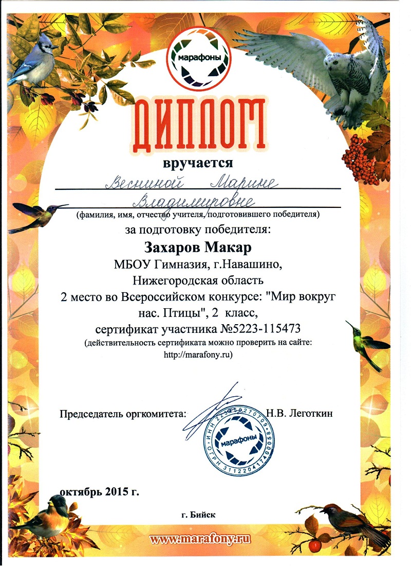 Персональный сайт учителя Весниной Марины Владимировны | |